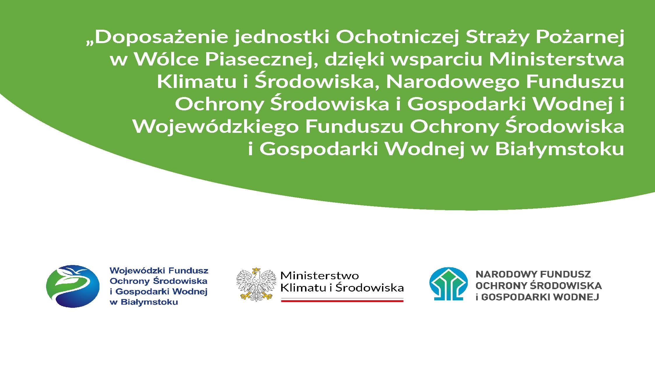 Ochotnicza Straż Pożarna w Wólce Piasecznej podpisała umowę na dofinansowanie realizacji przedsięwzięcia pod nazwą: „Doposażenie jednostki Ochotniczej Straży Pożarnej w Wólce Piasecznej”, z Wojewódzkim Funduszem Ochrony Środowiska i Gospodarki Wodnej w Białymstoku. W wyniku realizacji w/w zadania zakupiono sprzęt ratowniczo-gaśniczy dla Ochotniczej Straży Pożarnej w Wólce Piasecznej.