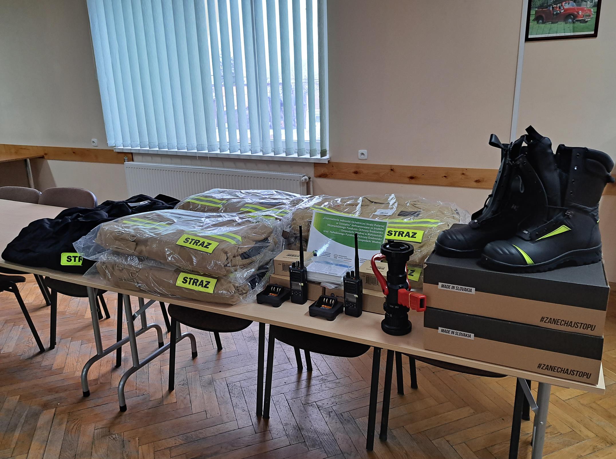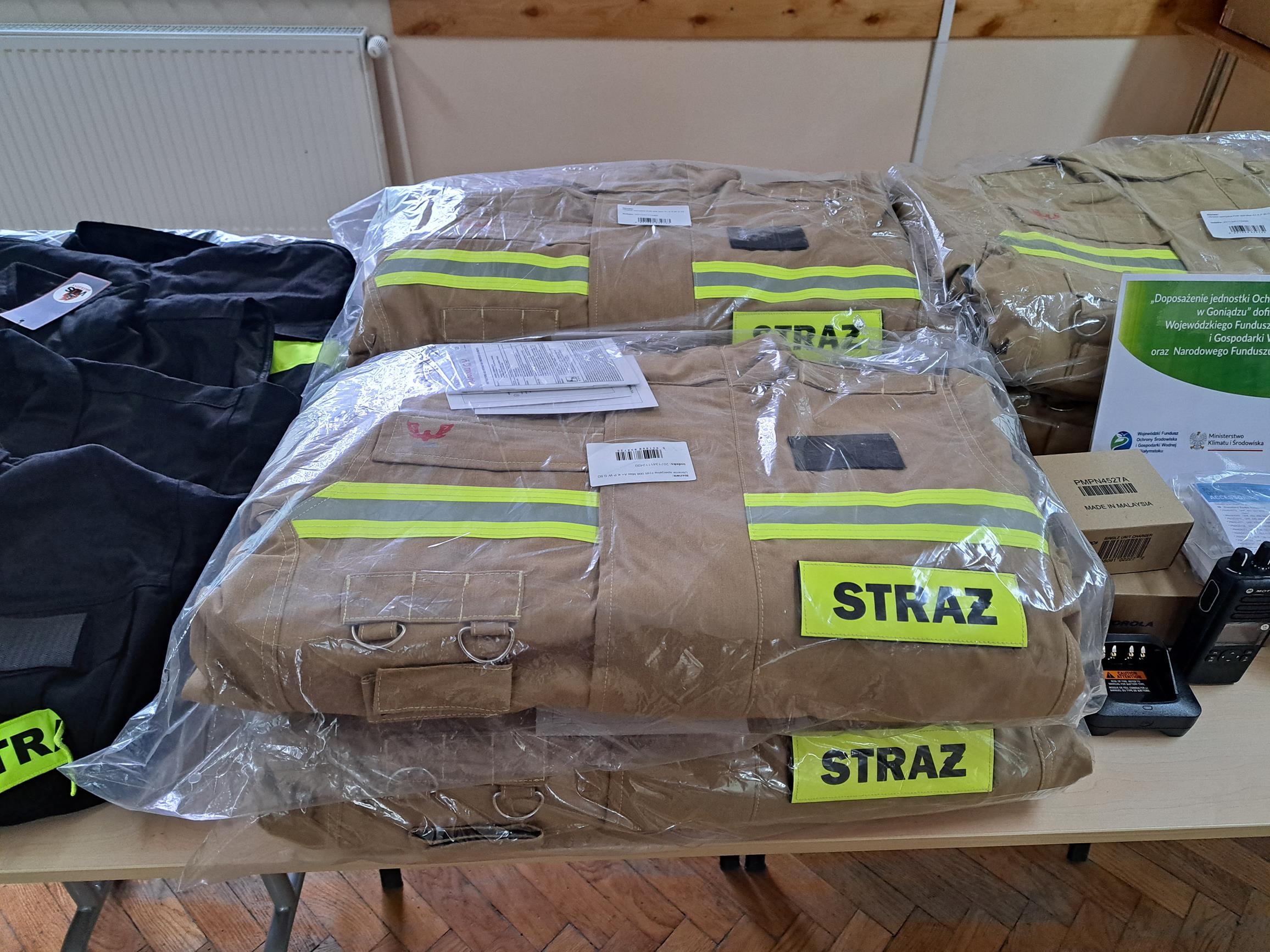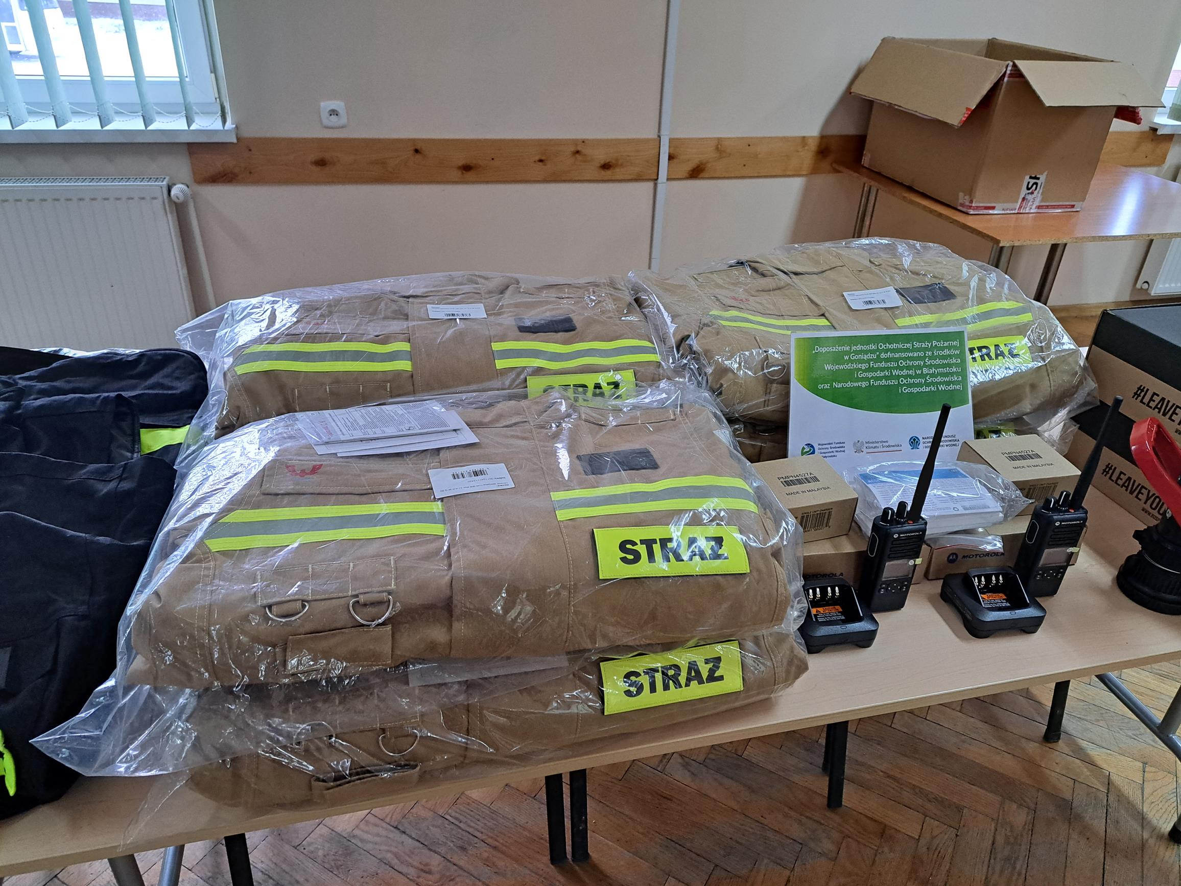 Jednostka OSP w Goniądzu zakupiła: ubrania specjalne – 6 kpl., buty specjalne strażackie skórzane – 2 pary, ubrania koszarowe – 5 kpl., radiotelefon przenośny – 2 kpl., ładowarka do radiotelefonu przenośnego – 2 szt., prądownica wodna – 1 szt.