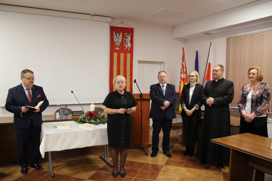 Po odczytaniu przez Burmistrza Ewangelii, wspólnej modlitwie i kolędowaniu, nastąpił czas składania życzeń oraz dzielenia się opłatkiem.