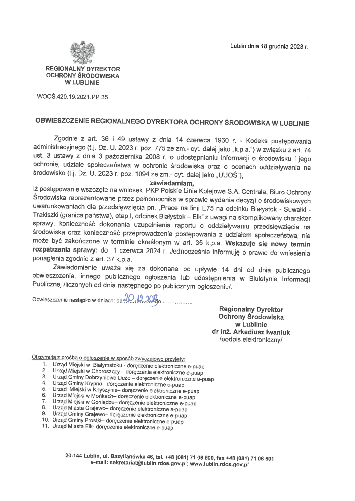 Aktualności 21 grudnia 2023 Obwieszczenie Regionalnego Dyrektora Ochrony Środowiska w Lublinie 0 Udostępnij 0 tweet 0 udostępnij 0 udostępnij źródło: um-monki.pl Poprzedni Artykuł POLICJANCI DOSKONALILI UMIEJĘTNOŚCI STRZELECKIE ORAZ TAKTYKI I TECHNIKI INTERWENCJI Następny Artykuł Walka o Piękno i Porządek: Apel Urzędu Miejskiego w Knyszynie