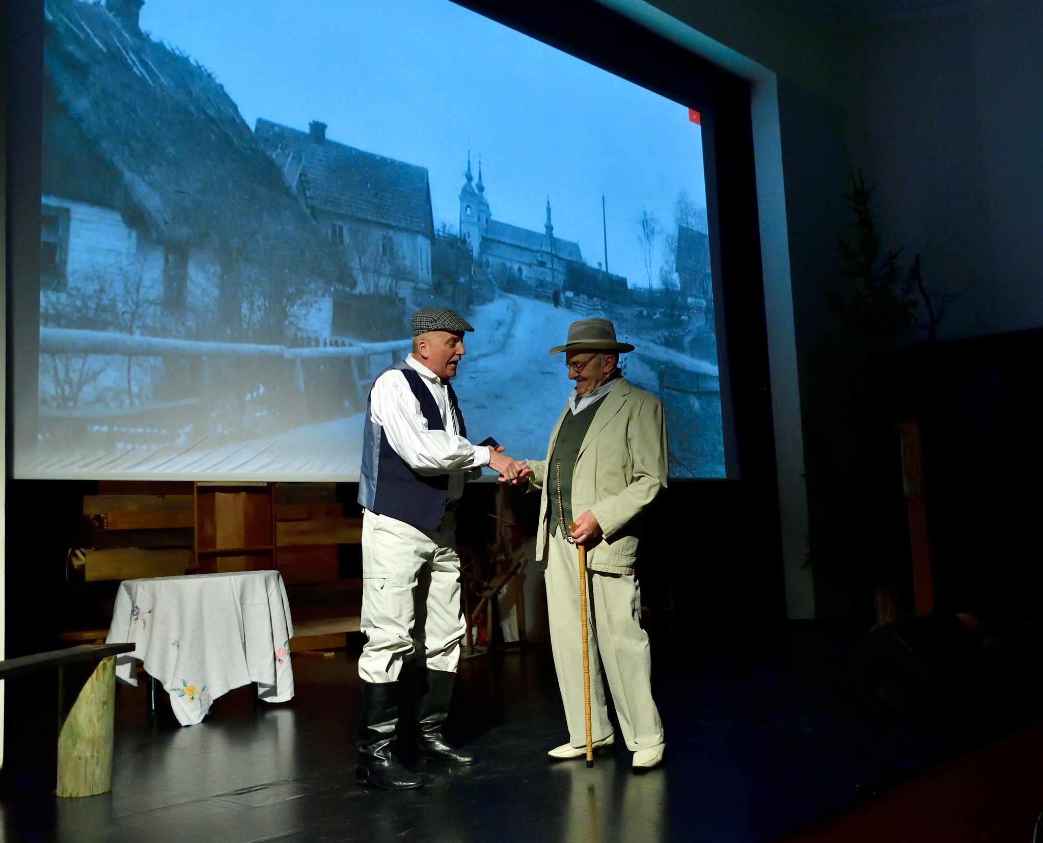 Niezwykle istotnym elementem spektaklu stał się piękny rekwizyt – drewniana kapliczka przedstawiająca Trójcę Przenajświętszą. Ten wyjątkowy element został wykonany przez lokalnego rękodzielnika, Pana Sławomira Obłażewicza z Goniądza, dodając spektaklowi niepowtarzalnego charakteru i głębi.