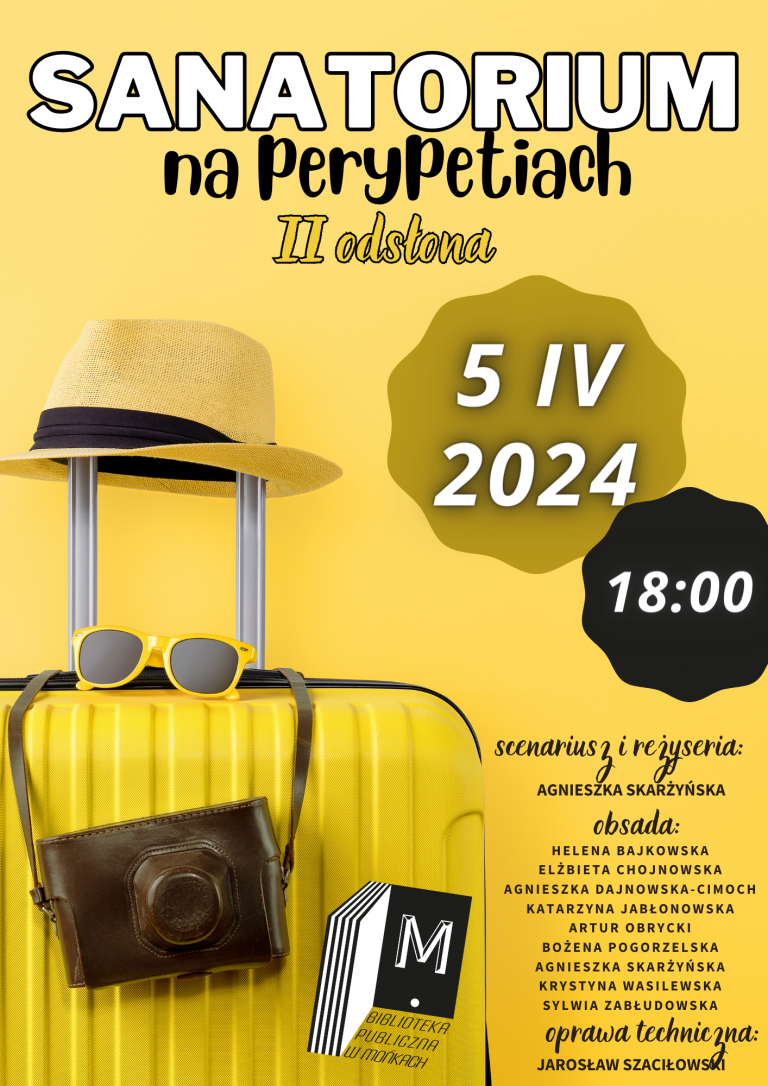 Lokalna scena kulturalna Moniek szykuje się na niezwykłe wydarzenie teatralne, które zapewne rozśmieszy i poruszy serca widzów. Już 5 kwietnia 2024 roku (piątek) o godzinie 18:00 w Mediatece odbędzie się przedstawienie “Sanatorium na perypetiach”, wykonane przez utalentowanych aktorów z naszej okolicy.