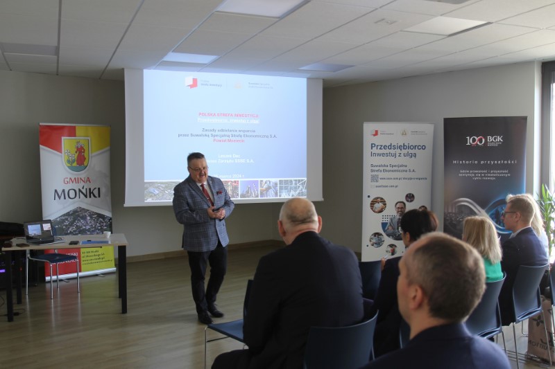 Spotkanie miało na celu przede wszystkim przedstawienie przedsiębiorcom z powiatu monieckiego możliwości inwestycyjnych oraz wsparcia, jakie mogą otrzymać przy rozwijaniu swoich firm. Adresowane było zarówno do przedsiębiorców z sektora produkcyjnego, jak i tych świadczących nowoczesne usługi dla biznesu.